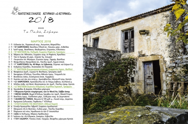 Αστυράκι Μαλεβιζίου - Ημερολόγιο 2018